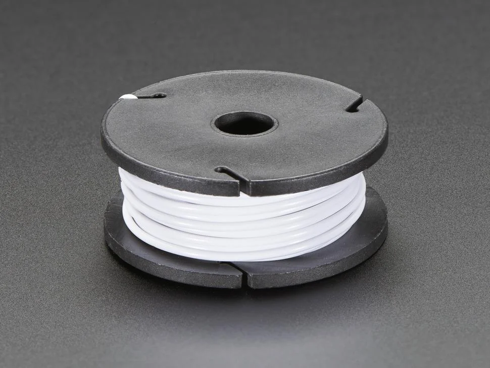 La confezione include una bobina da 25 piedi di filo bianco, con anima solida da 22 AWG e diametro esterno di 1,6 mm, che fornisce ampio materiale per i tuoi progetti elettronici.