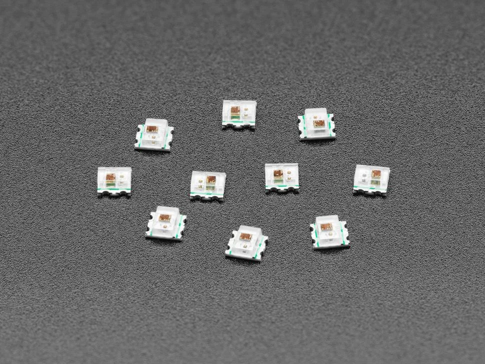 Perfetti per progetti che richiedono caratteristiche salvaspazio, questi LED RGB Nano da 2 mm x 2 mm sono significativamente pi\\u00F9 piccoli dei NeoPixel mini 3535 e dei NeoPixel standard da 5050 mm. Il chip driver integrato con azionamento a corrente costante da ~12 mA garantisce colori uniformi senza resistori esterni, migliorando semplicit\\u00E0 ed efficienza.