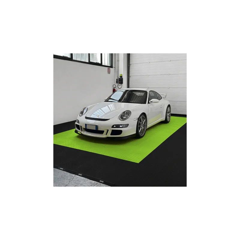La piastrella SOGI PAV-04-LM è un rivestimento pieno con rilievi antiscivolo in polipropilene (PP) di colore verde lime, ideale per ambienti dove resistenza, facilità di manutenzione e durabilità sono le priorità. È particolarmente indicato per pavimentare garage, centri car detailing, autofficine, autosaloni, box, fiere, capannoni, centri sportivi, ed in tutte quelle operazioni dove impatto visivo e resa estetica, ma anche resistenza e durevolezza sono un must.