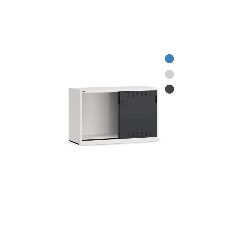 L’armadio multiuso presenta porte con serratura con chiave e fessure alle estremità perfavorire il ricambio dell’aria ed evitare lo stazionamento di fumiderivanti da prodotti chimici o il surriscaldamento nel caso di impiegodi caricabatterie. Le ante scorrevoli sono adatte nel caso in cuil’armadio sia posto in aree di piccole dimensioni o di passaggio così danon creare ingombri.