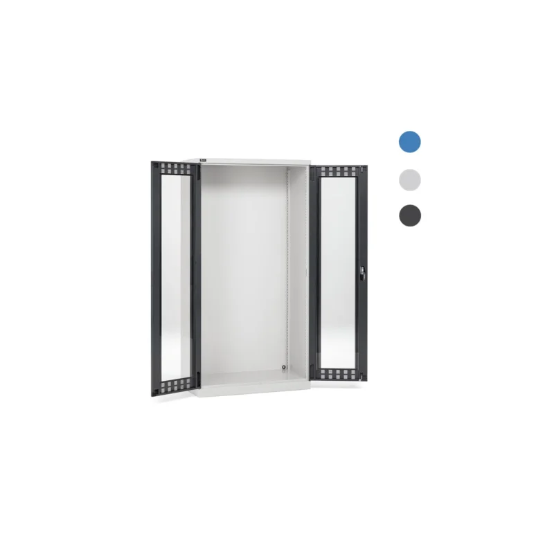 L’utilizzo delle ante in policarbonato consente di avere una visione immediata del contenuto dell’armadio, così da velocizzare il reperimento degli utensili, componenti o materiali per il lavoro.