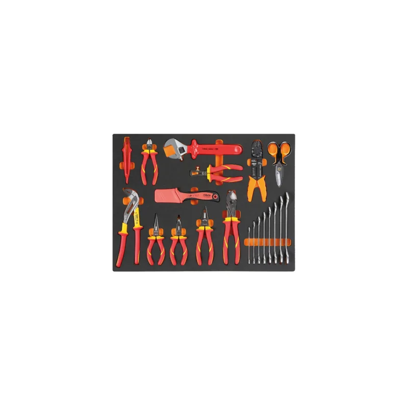 L’assortimento di 20 utensili BETA MB64 per elettrotecnica isolati 1000V, invassoio morbido in EVA, è ilsupplemento ideale per la cassettiera BETA C35 per averesempre lo strumento giusto a portata di mano.