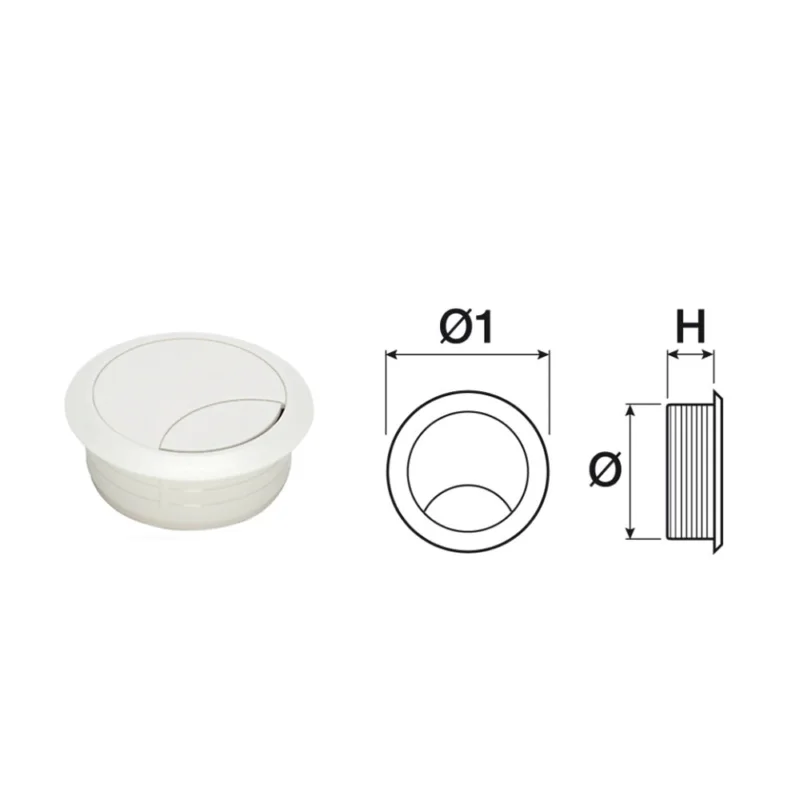 La bocchetta passacavi con diametro 80 mm e finitura bianca è ideale per gestire il passaggio ordinato dei cavi su scrivanie, tavoli operativi, postazioni multimediali e arredi tecnici. Grazie al foro ampio, permette il transito di più cavi contemporaneamente, mantenendo pulizia e funzionalità.