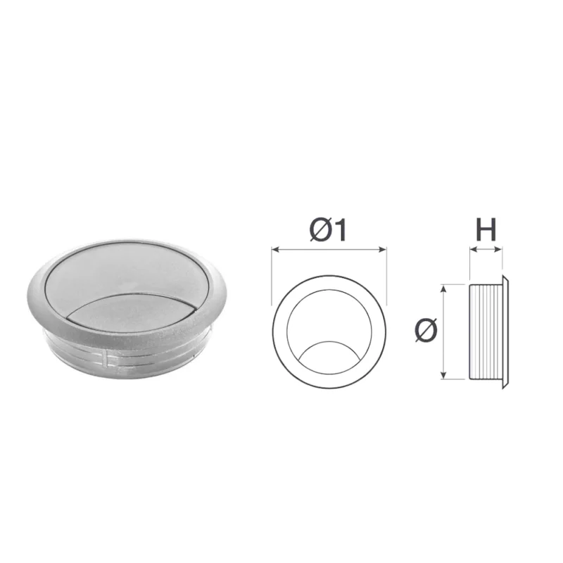 La bocchetta passacavi con diametro 80 mm e finitura grigia è studiata per facilitare il passaggio ordinato dei cavi su scrivanie, postazioni operative, tavoli tecnici e mobili multimediali. Il foro ampio permette il transito di più cavi, mantenendo l’area di lavoro pulita e funzionale.
