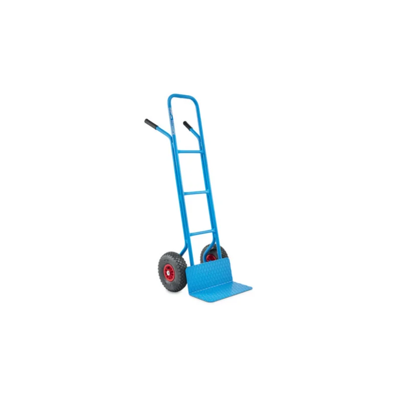 Il carrello porta cassa stretto OMCN 214/B ha una struttura tubolare in acciaio saldato e verniciato a polveri nella colorazione blu: all’estremità inferiore, è stato ricavato un pianale di appoggio zigrinato in lamiera per facilitare il posizionamento e sollevamento del carico.