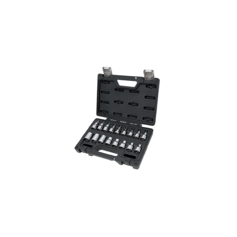 L’assortimento BETA BW 923E-FTX/C17 include 17 chiavi a bussola progettate per viti con profilo Torx®, tutte custodite in una cassetta di plastica robusta e compatta. Ogni chiave a bussola è dotata di attacco quadro femmina 1/2\\”, assicurando massima compatibilità con avvitatori e una gestione semplice durante interventi di manutenzione e lavori meccanici.