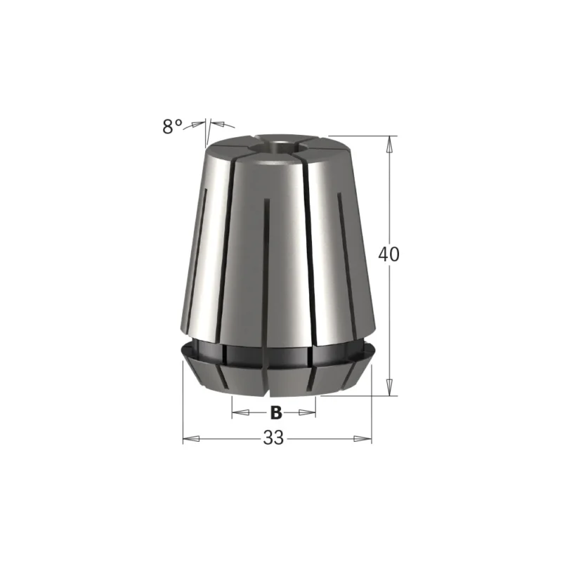 Con dimensioni 33×40 mm e diametro 16 mm (5/8\\”), è ideale per il fissaggio di frese e utensili con gambo cilindrico, assicurando stabilità durante le lavorazioni ad alta velocità.