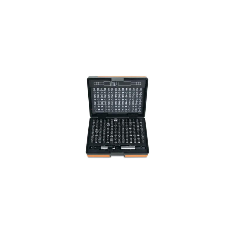 La serie BETA 861/C100 comprende 98 inserti e 2 portainserti, contenuti in un pratico astuccio plastico che rende il set funzionale e facile da trasportare. Gli inserti sono dotati di attacco esagonale da 1/4\\”, compatibile con la maggior parte degli utensili. Ideale per l’utilizzo con avvitatori manuali, elettrici e pneumatici, questa serie offre versatilità e praticità sia per uso professionale che per il fai-da-te.