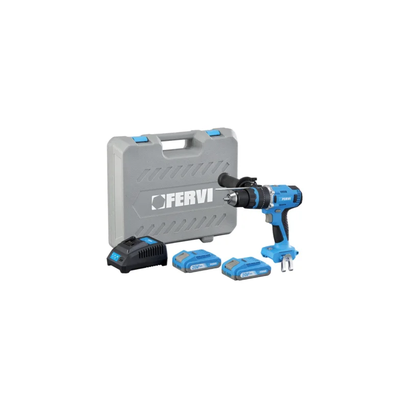 Economico trapano a percussione a batteria fervi FB20ID3AB-22B 20v – 2 batterie 2ah – carica batterie 2a