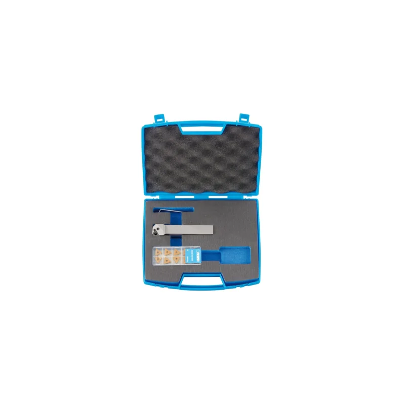 Set di utensile per esterno 90\\u00B0 da tornitura FERVI KITPTGNR20, completo di 10 inserti TNMG160404N e chiavi di servizio.