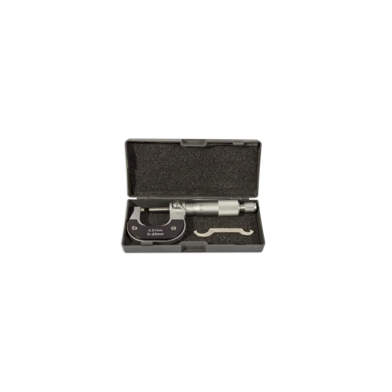 Il micrometro centesimale per esterni SOGI MIC-0-25 è uno strumento altamente professionale, ideale per officine e laboratori. Misura con precisione da 0 a 25 mm grazie alla scala centesimale, assicurando letture rapide e affidabili. Dotato di frizione, terminali cromati e contatti in metallo duro, garantisce durata e precisione costante.