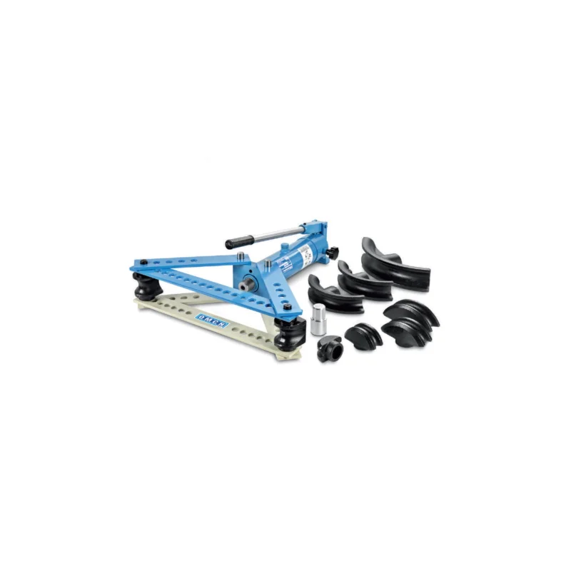 Il curvatubi idraulico OMCN RAPID T10 B, a piastra superiore scorrevole e con piastra inferiore a lettura costante, curva a freddo senza riempimento tubi gas e acqua con diametri da 3/8\\” (DN 10) a 1\\”1/4 (DN 32). Infatti, nel kit sono incluse 5 matrici di curvatura.