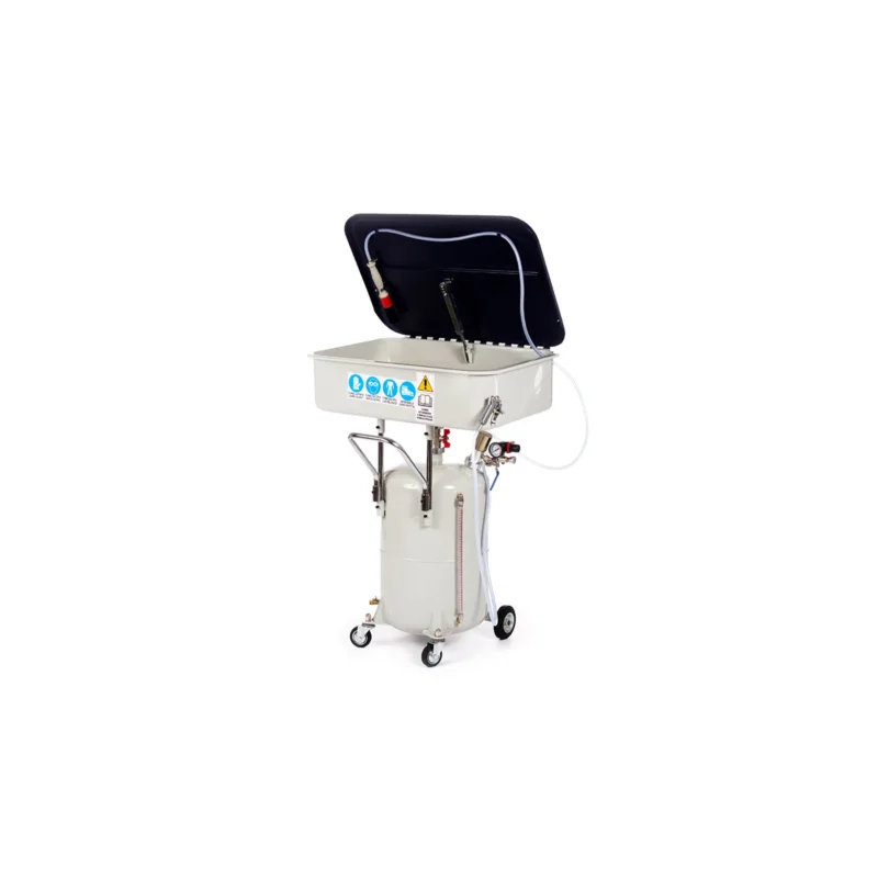 Macchina realizzata in acciaio e verniciata a polvere epossidica per resistere a lungo nel tempo, dotata di ruote per un pratico spostamento all’interno dell’autofficina. È importante non usare gasolio, benzina e altri tipi di solventi all’interno della vasca per il lavaggio dei pezzi.