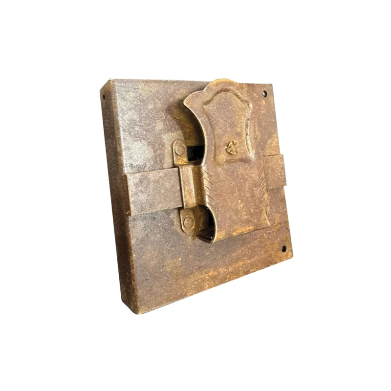 Realizzata in ferro con finitura arrugginita, questa serratura riproduce fedelmente l’estetica delle vecchie lavorazioni, risultando perfetta per ambienti country, vintage o per restauri. Il foro piccolo per la chiave aggiunge un tocco autentico, richiamando le antiche serrature da bottega.