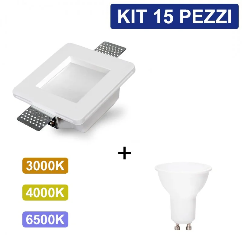 Spedito Oggi Kit 15 Portafaretto in Gesso Ceramico Quadrato Con Vetro + 15 Lampadine GU10