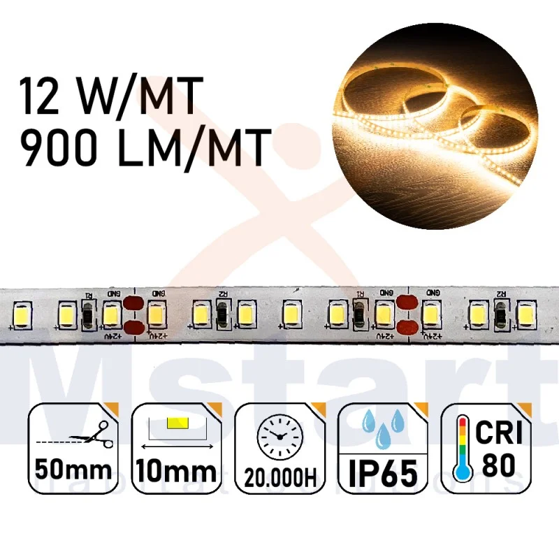 Striscia Led 12W/MT 24V PCB 10mm 600 Led SMD 2835 IP65 3000K 5MT Più Venduto