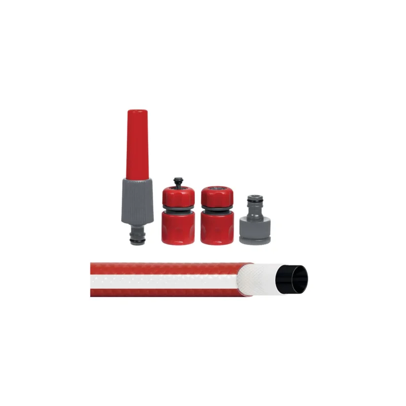 Tubo da giardino a 4 strati per impieghi generici + Kit ugelli con lancia e raccordi – Resistenza a sollecitazioni medie – Rinforzo tessile retinato in poliestere ad alta tenacità – Senza Cadmio e Piombo.