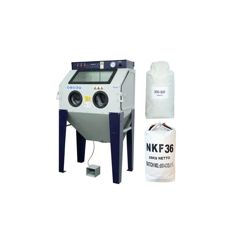 Ultima Occasione sabbiatrice sogi s-100 + sacco 25 kg di corindone grana 36 + 25 kg microsfere vetro grana 200/300