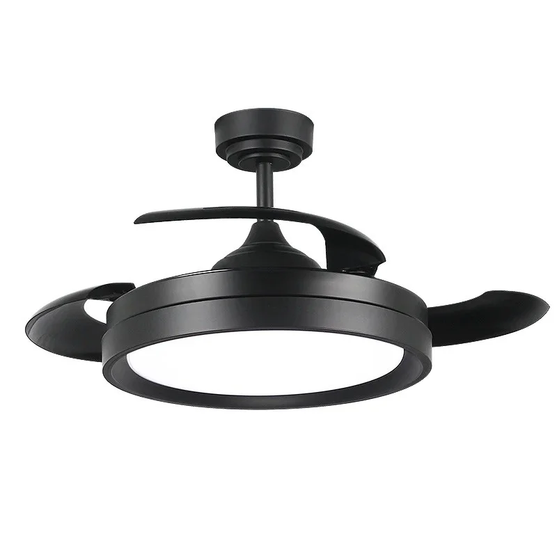 Il ventilatore da soffitto è progettato in nero e dispone di un motore a corrente continua (CC) che garantisce un funzionamento efficiente e silenzioso.