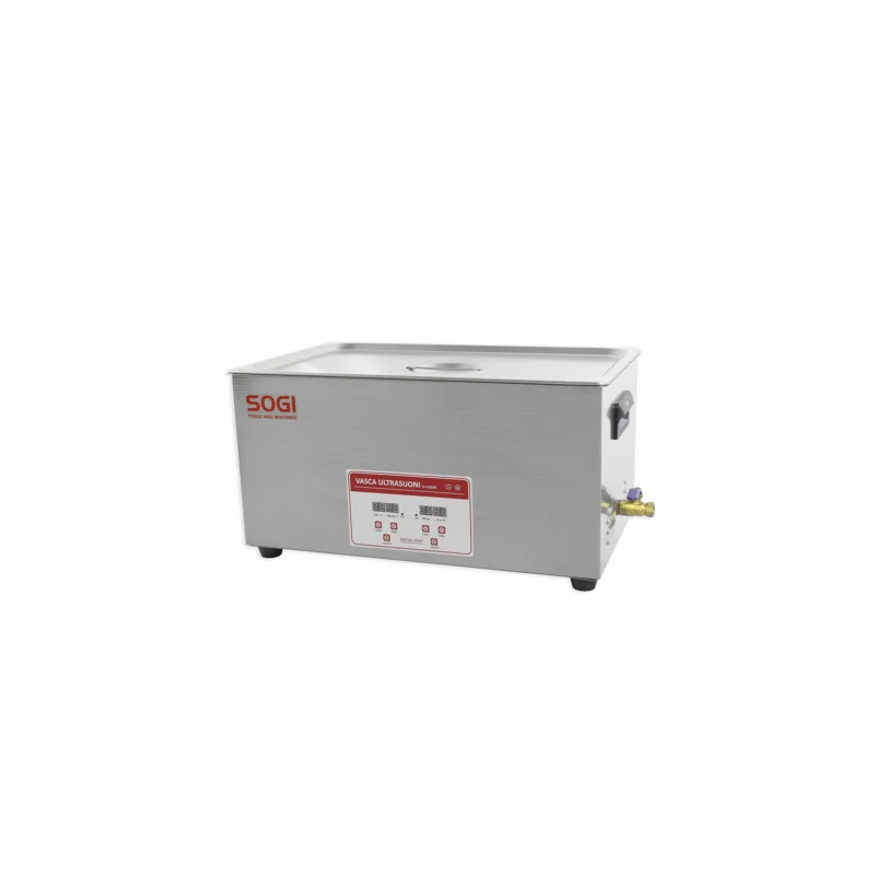 La vasca di lavaggio a ultrasuoni SOGI VL-U2200R è realizzatainteramente in acciaio inox per contrastare la corrosione dei solventi oliquidi sgrassanti utilizzati durante il lavaggio dei pezzi. Éinoltre dotata di riscaldamento con un massimo di 80\\u00B0 Celsius.Predisposta di ventola di raffreddamneto per il sistema dialimentazione.
