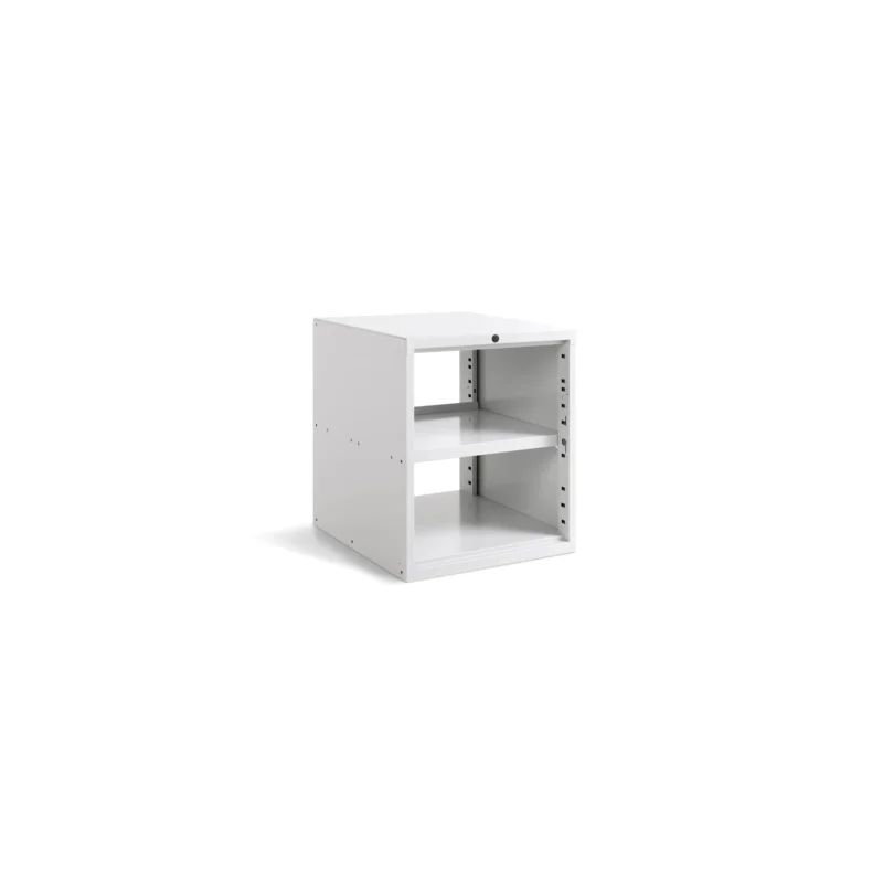 La parte inferiore del banco da lavoro WORK MASTER BR può essere allestita con un armadio FAMI MBR05SX00020708 che presenta un piano intermedio che crea due vani per l’organizzazione di componenti ed attrezzatura. L’armadio può essere utilizzato aperto oppure può essere chiuso tramite porte totali con chiusura a cilindro ed apertura a destra o a sinistra.