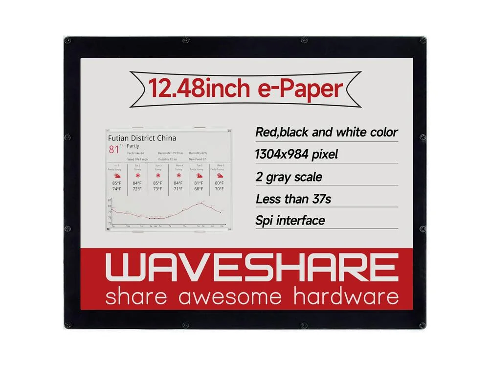Home / Materiale Elettrico & Illuminazione / Waveshare Display E-Ink da 1304×984, 12,48 pollici, modulo a tre colori rosso/nero/bianco. Affare