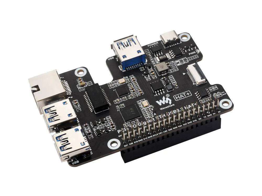 Waveshare HAT PCIe a Ethernet Gigabit e USB 3.2 Gen1 per Raspberry Pi 5, 3x USB 3.2 Gen1, 1x Ethernet Gigabit, senza driver, plug and play, Raspberry Pi 5 PCIe HAT Affare